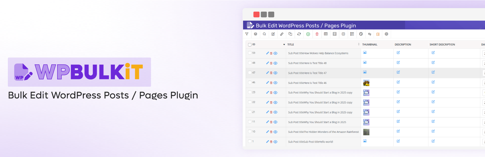 WordPress Bulk Posts Editing Plugin is the best extension to improve the default WordPress bulk edit feature for posts, custom posts and pages. On the other hand, WordPress Bulk Posts Editing is a professional WordPress plugin for managing and bulk editing WordPress posts, pages and custom post type’s data in a more robust and flexible way.